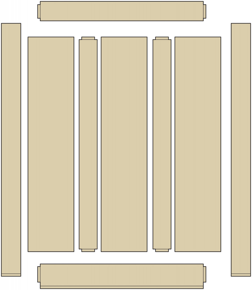 On the inside of all the pieces, cut a 38“-wide x 58“-deep rabbet (it must be deep enough to accommodate the thickness of the zinc channel in the glass panels). Then use the rabbeted stiles and rails to guide the layout location of the 516“-wide x 114“-deep mortises.