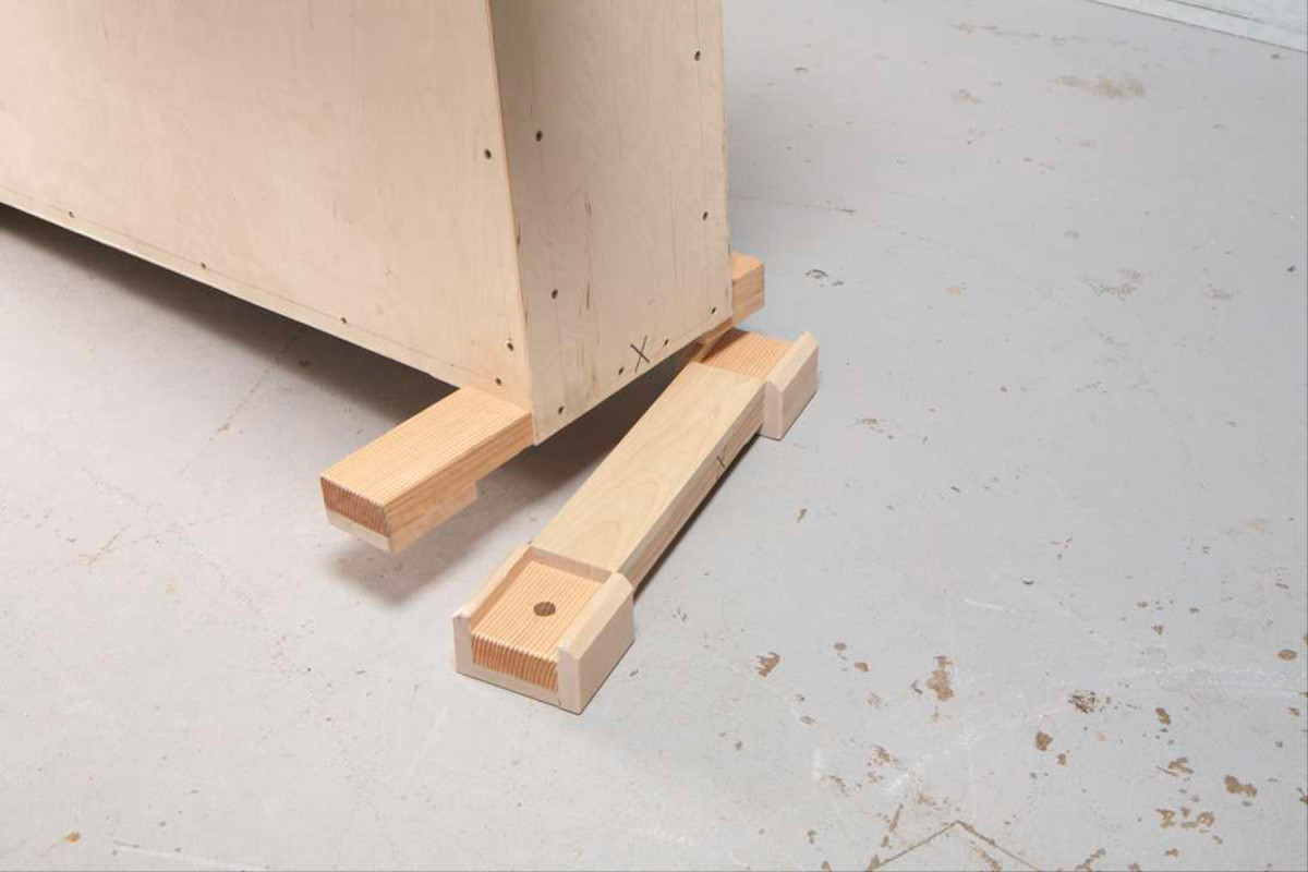 As designed, the bench is quite low—about right for a hand-tool user who is 5′ 8″ tall. If you’re taller, or if you don’t need a low, hand-tool-friendly bench, just make the feet twice as thick or add tall blocks underneath them. (The bench’s base is made from a single sheet of plywood, and is about as tall as it can be without cutting into a second sheet.)