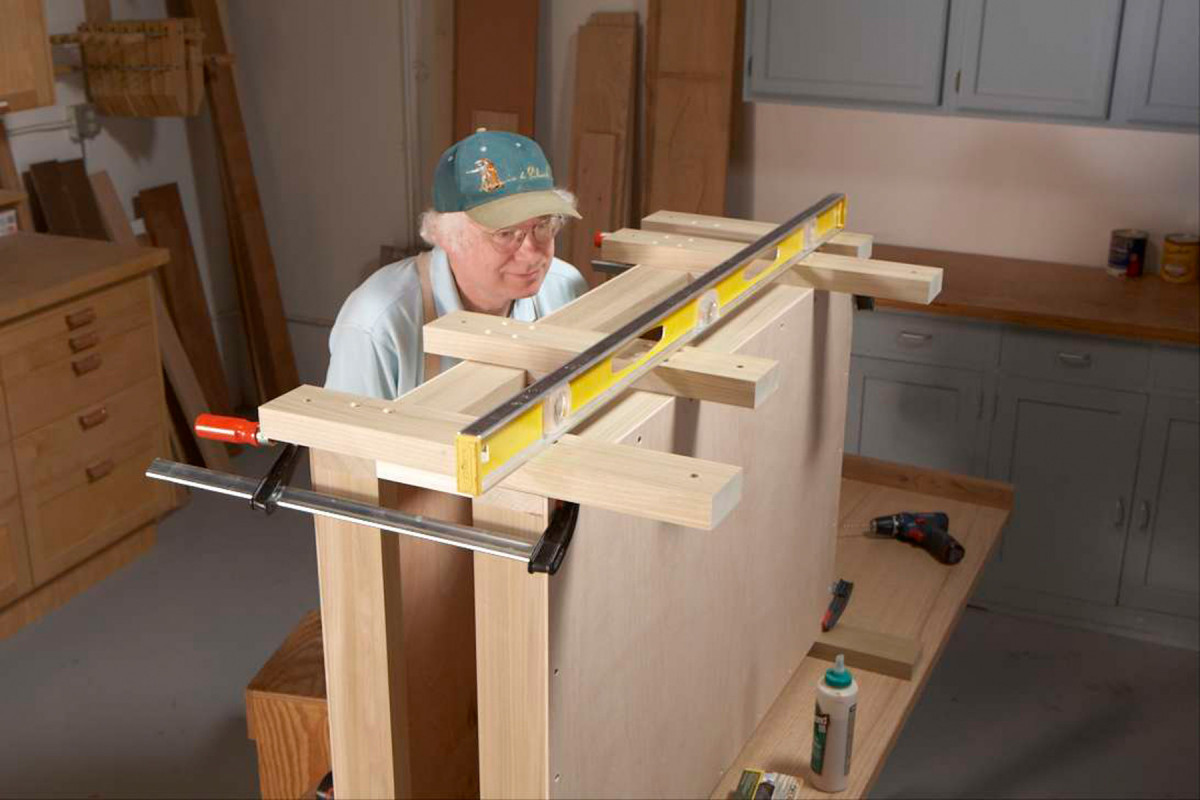 6. Sight across the top of the box beam with the middle cleats in place—before gluing them on. Everything must be level.