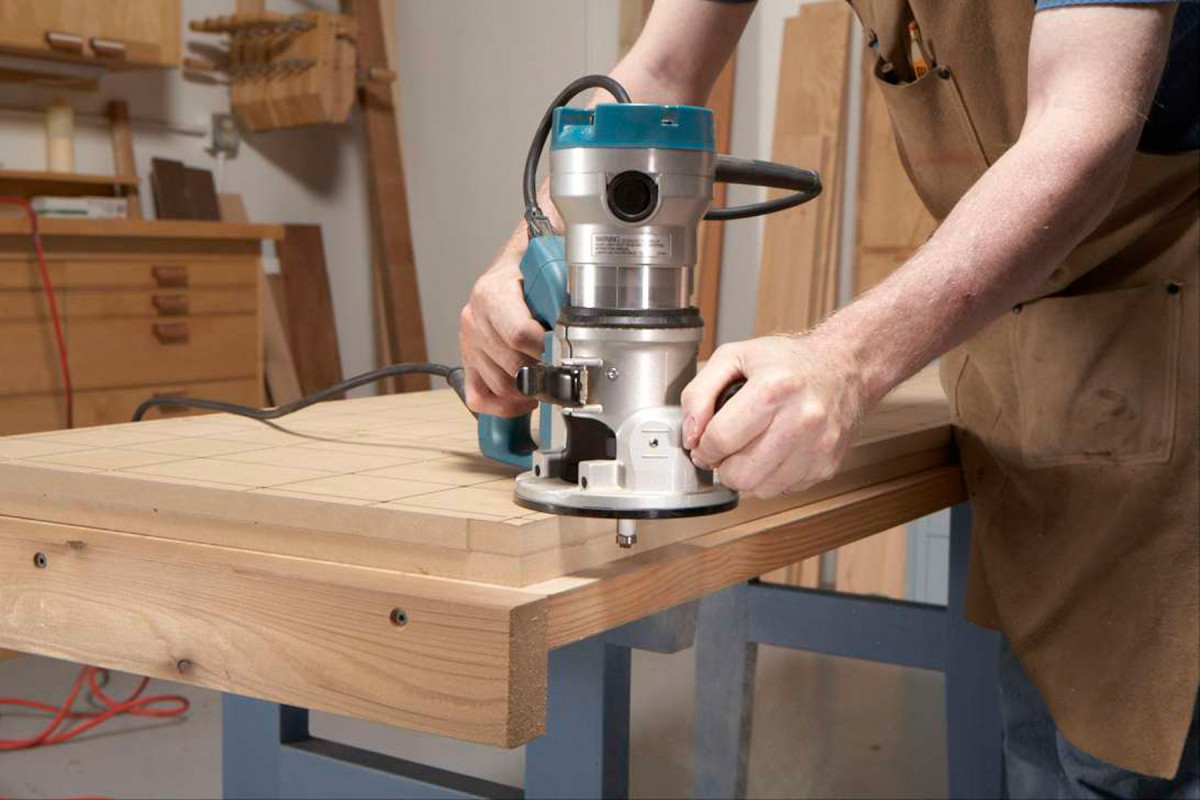 When you use a plane, a bench should be about wrist height. When you use a router or a sander, it should be about two to three inches taller.