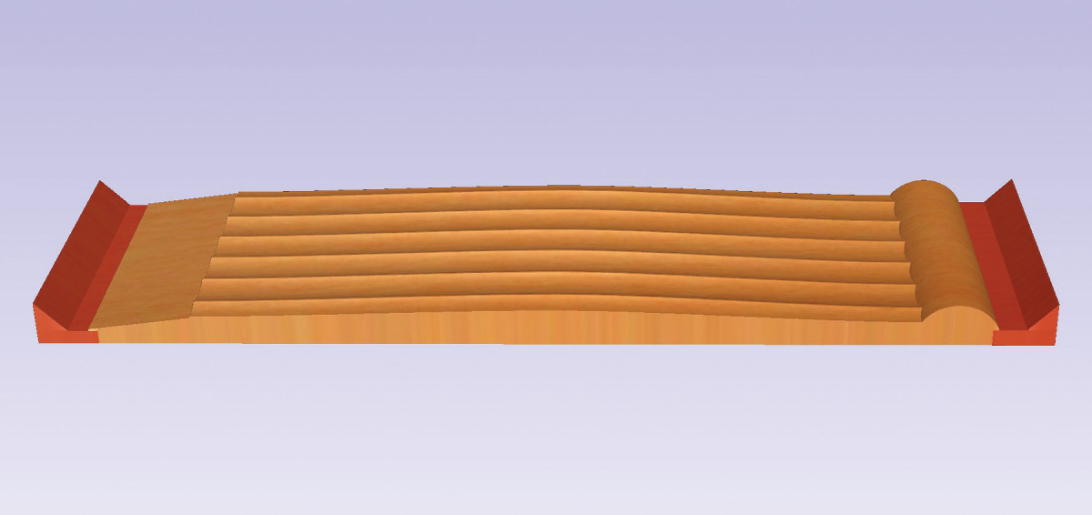 Step 3) Finish rout the final shape The final (finishing) pass removes the last 1/32″ of material and leaves a smooth surface. To do this, the 1/4″ bullnose bit is programmed to “step over” each previous pass by only 1/50″. This tiny step-over leaves a surface that’s easy to clean up with 180 grit sandpaper. This finishing pass takes about 50 minutes to complete.