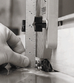 To set the rip fence, measure from the outside or left edge of the teeth to the rip fence until you get the desired width of your rabbet. Lock the fence down. Then use your 6″ rule to set the blade height so it equals the depth of the rabbet. Again, marking the highest projection of your saw blade’s teeth on your saw’s throat plate will save you hundreds of test cuts per year.