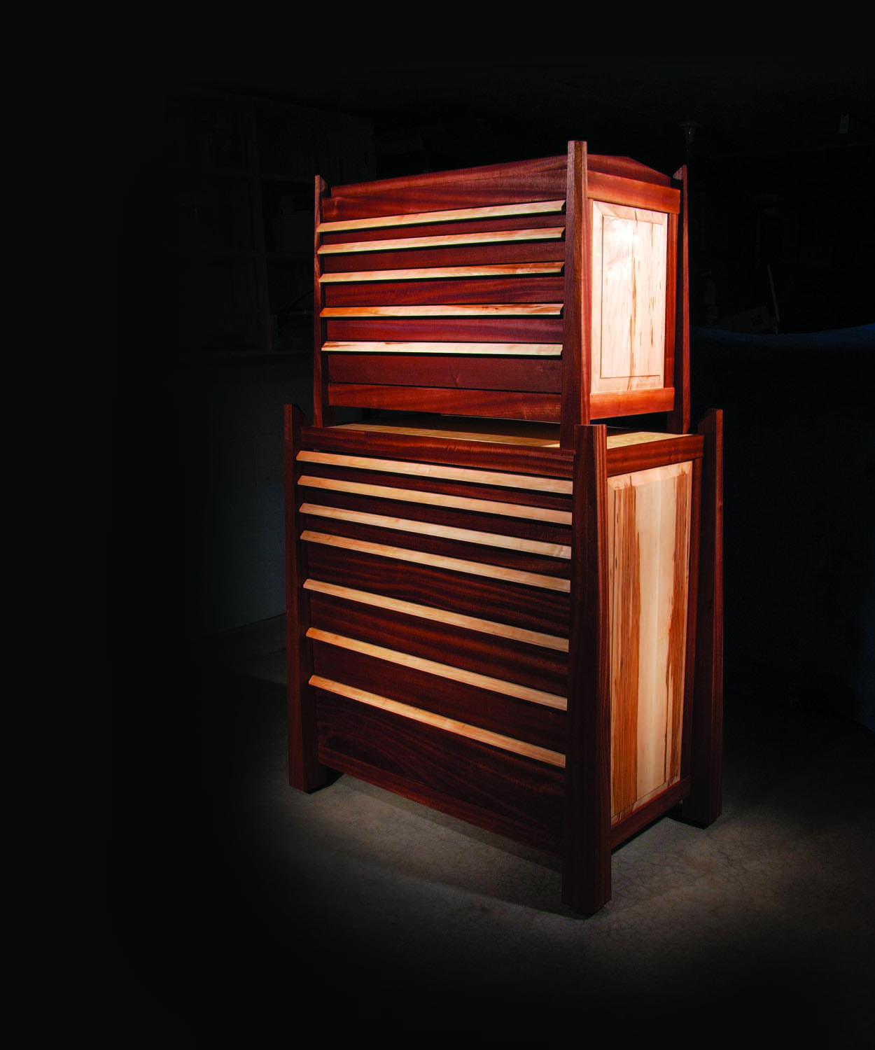 Unique because of its appearance and easy to build because it’s constructed using basic woodworking techniques, this two-part cabinet provides copious storage and signals the work—and the shop—of a true craftsman. The two cabinets share the same features and joinery, so building them simultaneously offers economy when milling the parts. But either cabinet would make a super storage unit all by itself. So, build one or both, as your shop warrants.