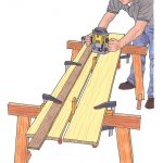 13. Install a 3/8″-rabbeting bit with bearing in a router and rout a rabbet on the back of each side. Rabbeting bits can be larger than the hole on many factory base plates, which was the case with this tool. If so, make a quick auxiliary base plate with a larger hole, constructed with plywood.