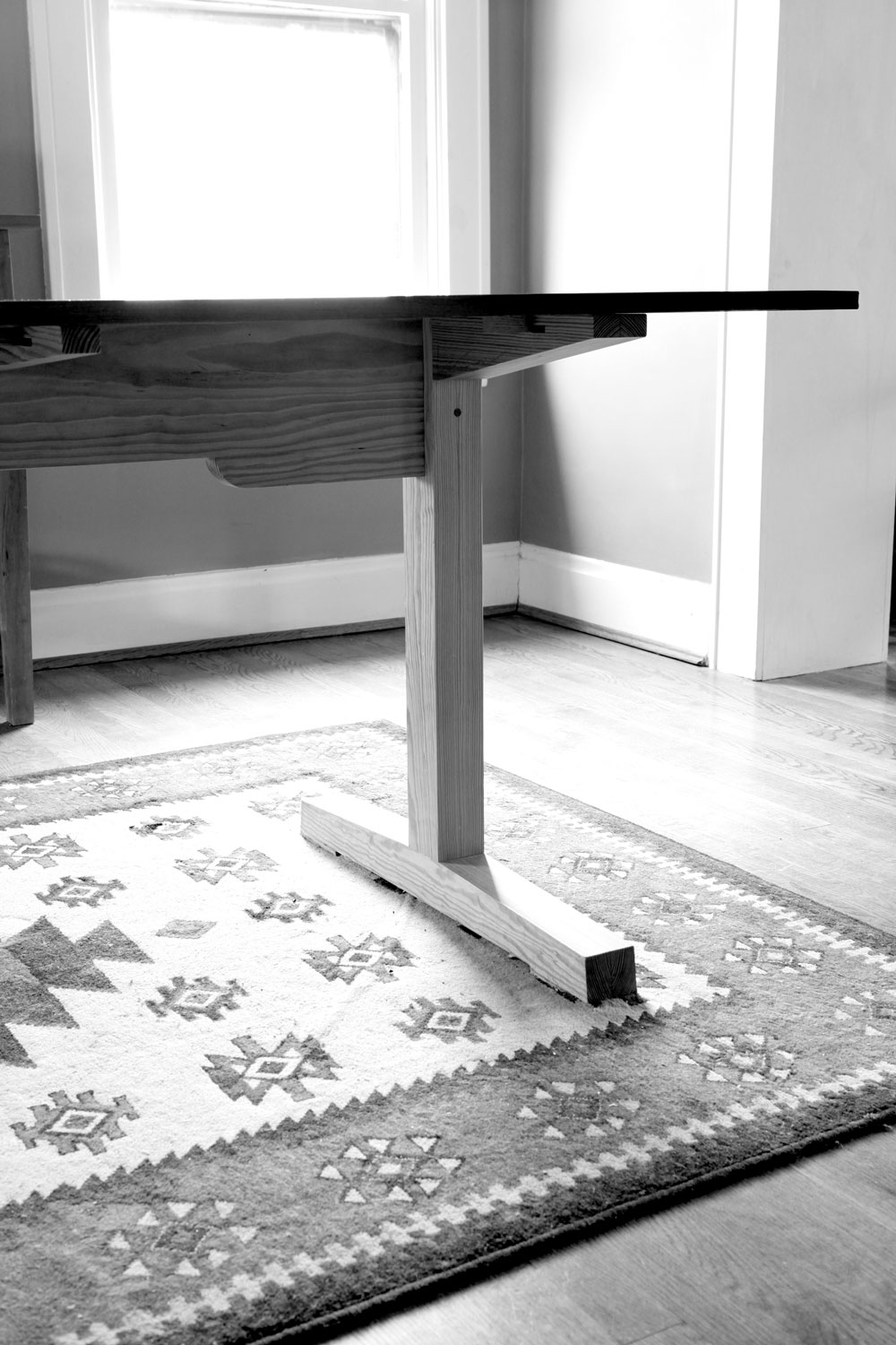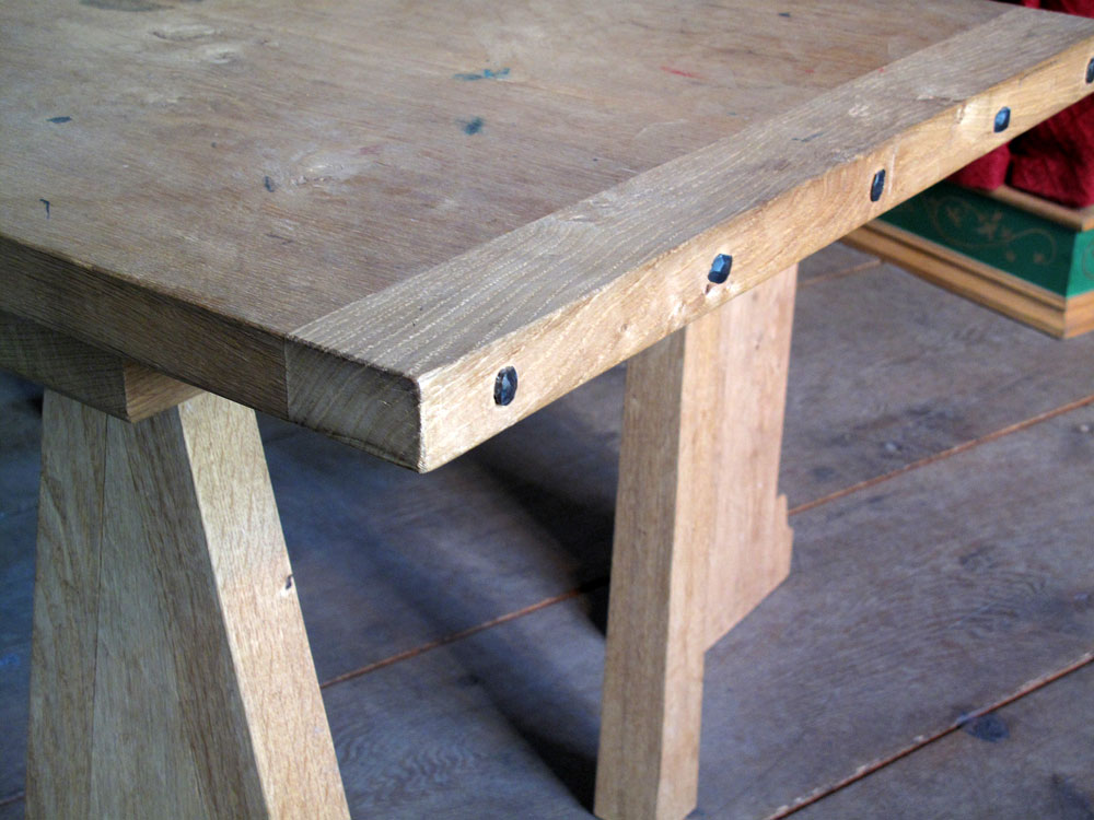 In truth, it is all those things. I have seen early trestle tables that would look quite modern if you didn’t stain them dark brown and then beat them like a rented mule with a bicycle chain to make them look “aged.” My table design was influenced by all those sources, and in the end, I sought to build it so it wouldn’t look out of place when put in any of those time periods. I thought that would be a difficult trick. It wasn’t.