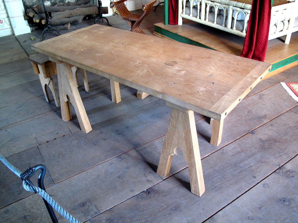 The reconstructed table in the room was a light-colored wood with clean lines and a low-luster finish. The surface of the English oak might have been burnished or had only a little wax on it. Except for a small Gothic arch in the base, that table would look fine in a French farmhouse, a Midwestern tract home or a New York loft apartment.