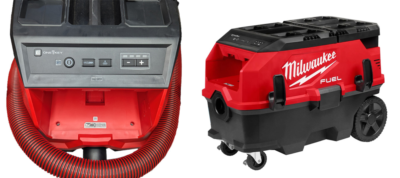 M18 FUEL PACKOUT 9 Gallon Dual-Battery Dust Extractor with VACLINK • Milwaukee • $1399 (includes vac, two 12ah batteries, and dual bay supercharger) Purchase at Home Depot
