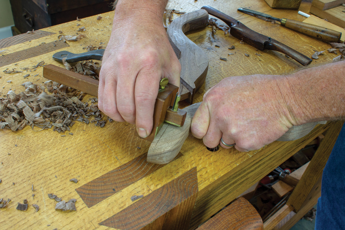 Start by thinning the sides of the leg with a spokeshave just above the feet.