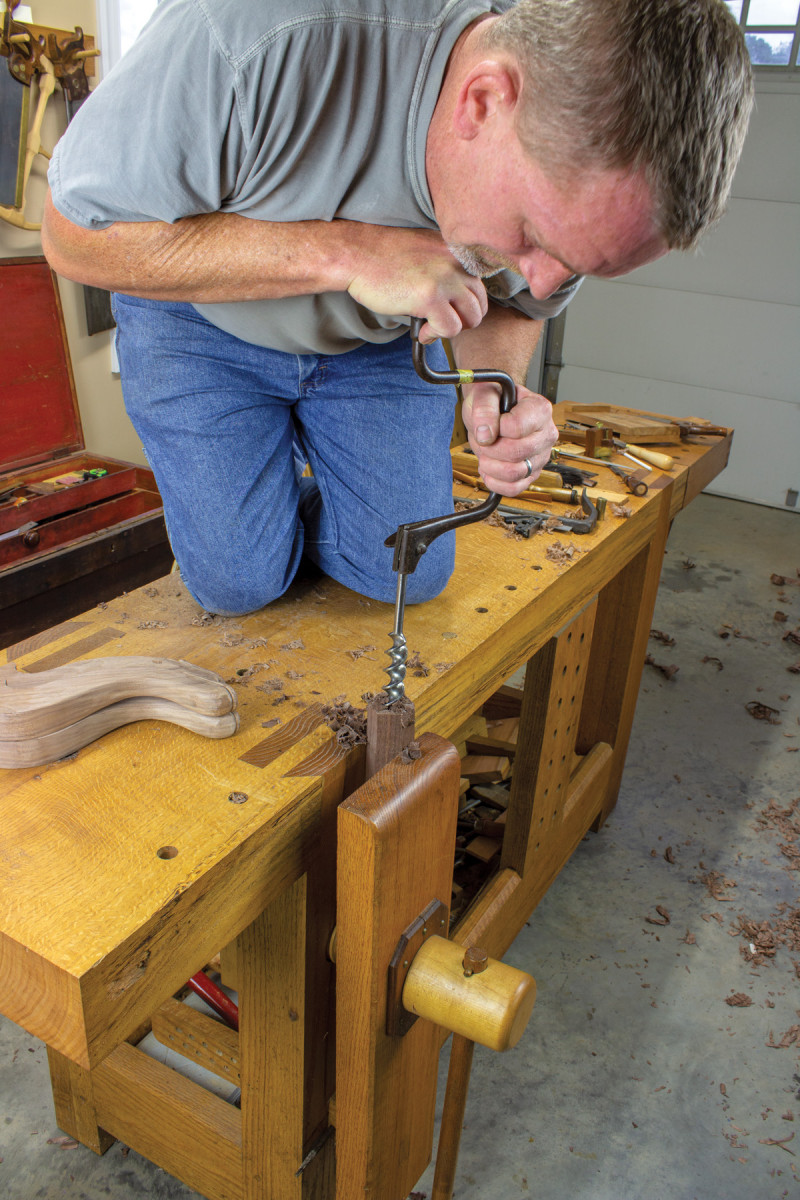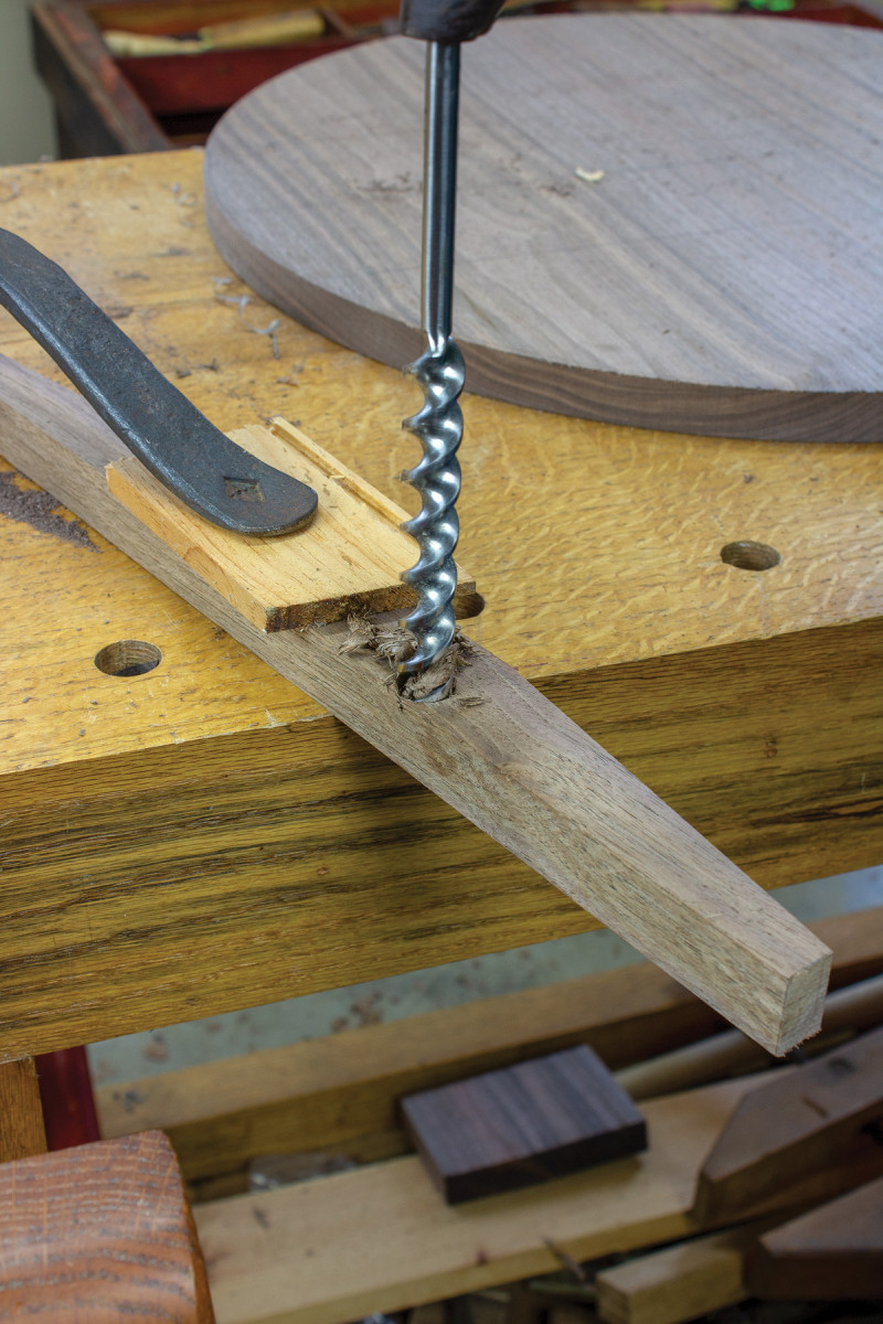 17. The tip of the auger bit often needs some downward pressure to bite into the end grain.