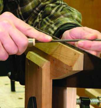 There are three things you need: a triangular file to make the teeth sharp, a saw set to bend the teeth away from the body of the blade and a vise to hold the blade while you work. A file costs about $5 and a new saw set less than $20. But a new saw vise will set you back more than $120 – unless you make your own.