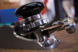 Similarly, Holtey’s innovative use of materials, including stainless steel for plane bodies and acrylic for totes, is driven by frustration with what he considers to be the shortcomings of traditional materials. So his decision to abandon the infill pattern planes for which he was known in favor of all-metal designs was prompted by what he perceives as the incompatibility between high-precision engineering and the seasonal movement of wooden wedges and infills.