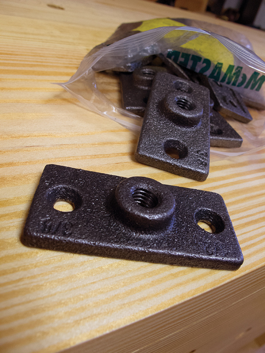 The core of this workbench is ductile iron mounting plates that are threaded to receive cap screws. This hardware is easy to install and robust. The rest of the hardware is standard off-the-rack stuff from any hardware store.