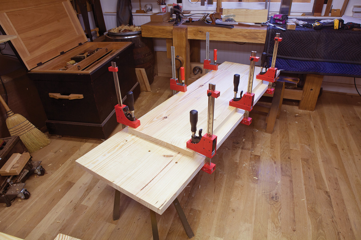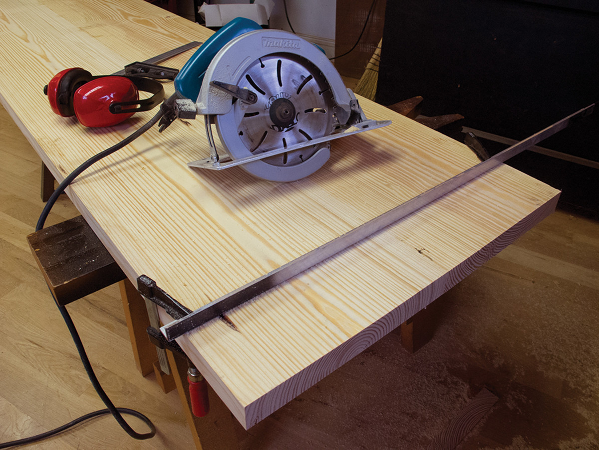 Glue up your two planks for your benchtop and cut the top to its finished width and length.