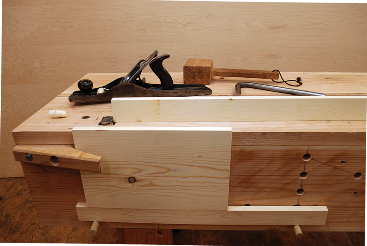 Be sure to drill some holdfast holes in the legs – both to store holdfasts and to support large work, such as passageway doors. Hold off on drilling any additional holdfast holes until you really need them.