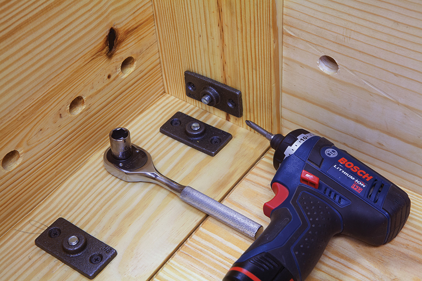 ■ No. 8 x 11⁄4” wood screws for attaching the interior apron bracing (you’ll need about 20)