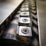 Once you’ve completed the vise assembly and mount it at one of the openings on the workstation, then you need to drill the hold-down holes on the vise module bottom plate. Look underneath the workstation bottom layer for the pair of holes underneath the vise module you mounted. These holes sit just outside the metal vise frame. Use a 5/16” drill bit to bore up through the module bottom plate. Remove the vise module and on the top of the bottom plate, where the vise is attached to, tap in 1/4”-20 T-Nuts. Now, when your vise module needs to be held down to the workstation, use 1/4”-20 star knobs screwed from underneath the bench.
