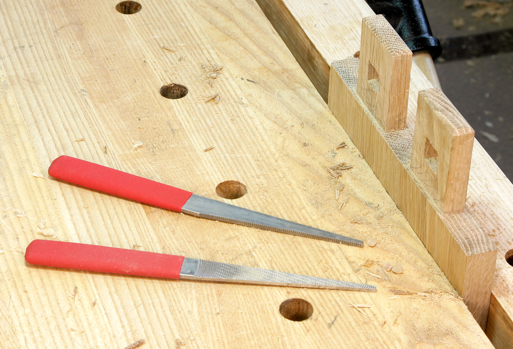Lee Valley recently added Japanese milled-tooth plane-maker’s floats to their product line-up, and I’ve been using them the last few days to tweak some through-mortises. These are similar to the previously available Xfine mille d-tooth files, but the floats are tapered in profile making them more adaptable to different size openings and special situations. Both floats have arc-shaped teeth that remove tiny shavings on the push stroke. One version has teeth on one face only and the other has teeth on one edge only. The combination of safe edges and sharp teeth allow you to remove small amounts of material in a precise way, while avoiding damage to adjacent edges.