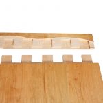 7. A variable spaced dovetail jig and router make quick work of the standard through dovetail corners. A dovetail bit handles the tails, while a straight bit cuts the pins.
