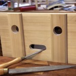 Plane down to your layout lines and clean up the joint for a test-fit. Decide which way the joint will go together and compare the ends of the batten to the sockets in your top. When both ends of a batten will fit in their socket, the temptation is to hammer it home. Resist.