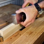 When you make them by hand, you can build in a little forgiveness that makes them both easy to assemble and tight. The trick? A shoulder plane. But I’m getting ahead of myself. First we have to cut the long and wide socket on the underside of the stool’s top.
