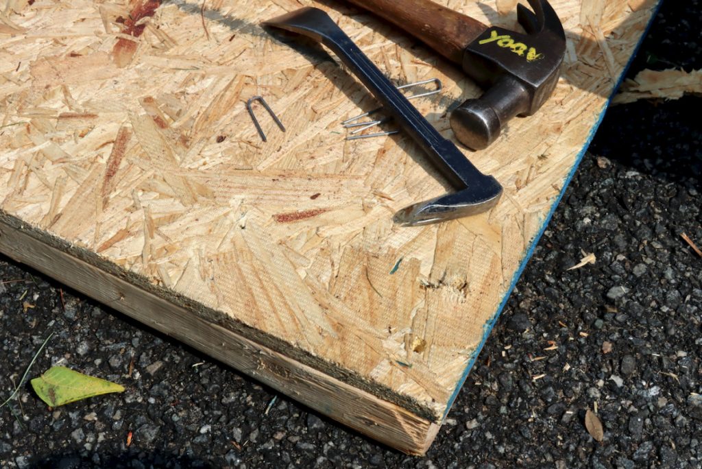 After I separated the OSB from the 2×4 I turned the board over and hammered the staples’ legs.