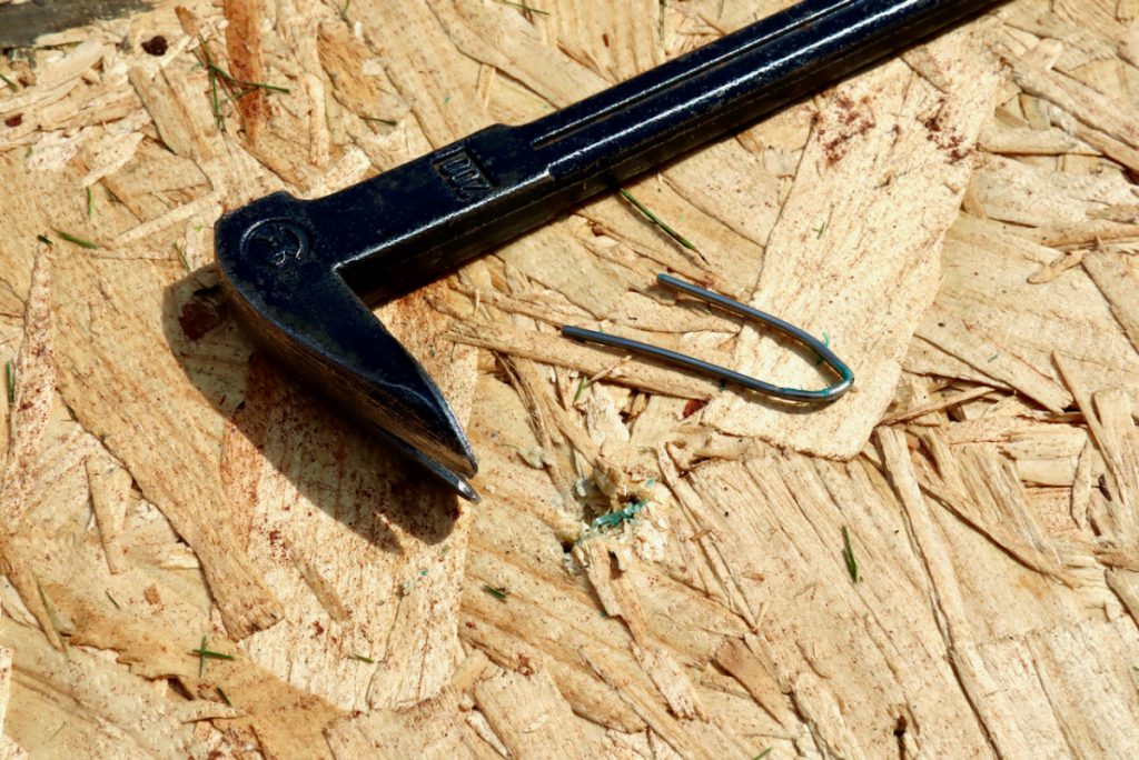 Next, I had to deal with stapled OSB & Lamber frames. With one or two hammer strikes at the flat heal of the tool’s head, I was able to send the Cat’s paw to bore its way under the staple.