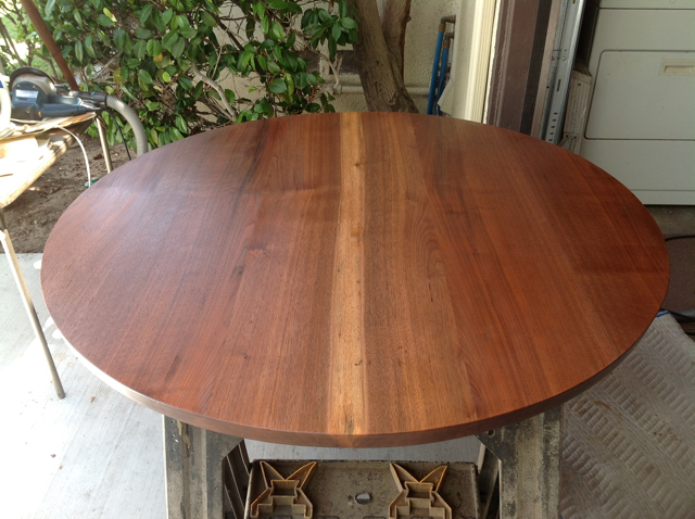 Most people would give up on this walnut tabletop because it would require too much sanding to get below the damage from the black water stains. If the surface was veneer, sanding the stains out would be impossible.
