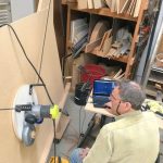 To make the mockup I took a scrap piece of wood and passed it through the bandsaw while providing a moderate rotation. I did not intend to create a perfect helix, just to make a free form twist. After this, I affixed onto the inner surface two strips of packaging tape to prevent the veneer from adhering to the mold. Then I cut a few strips of veneer, spread glue on them and placed them in between the molds and clamped the veneer sandwich together for a few hours. After this, I released the form from the mold, planed and sanded it and applied a shellac finish. The helical stick that came out was a good enough representation of the technique that Joseph Walsh uses. So when we arrived at the exhibit floor, the students were able to relate to his art with a better understanding of what it means to force wood into a trajectory. Can this technique be adapted for small scale projects? Of course it can. You can think of many ways to incorporate small bent or twisted laminations in projects, from handles to candle stick holders and from making wooden floral elements to magic wands and utensils for kids. The possibilities are endless so just give it a try.