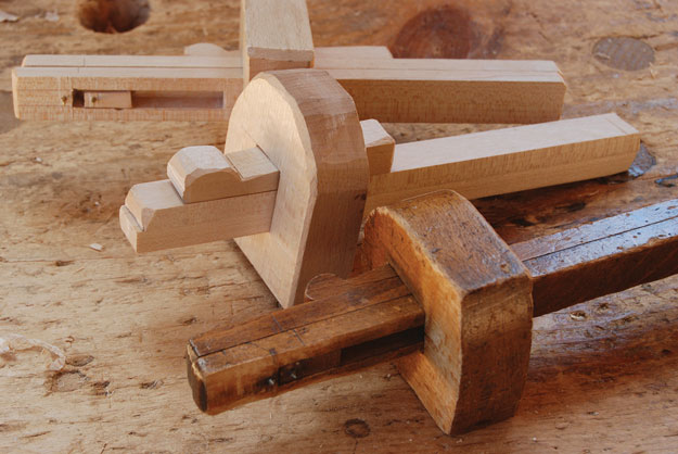 Old & new. While there are many types of mortise gauges (I have more than a few), my favorite is this two-beam wedged version. I liked it so much I copied it.