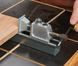 Photo 15. Hold the screw’s bottom thread against the sliding jaw’s back face to transfer the location of the groove’s shoulders. The location may vary, so mark each screw and jaw separately.