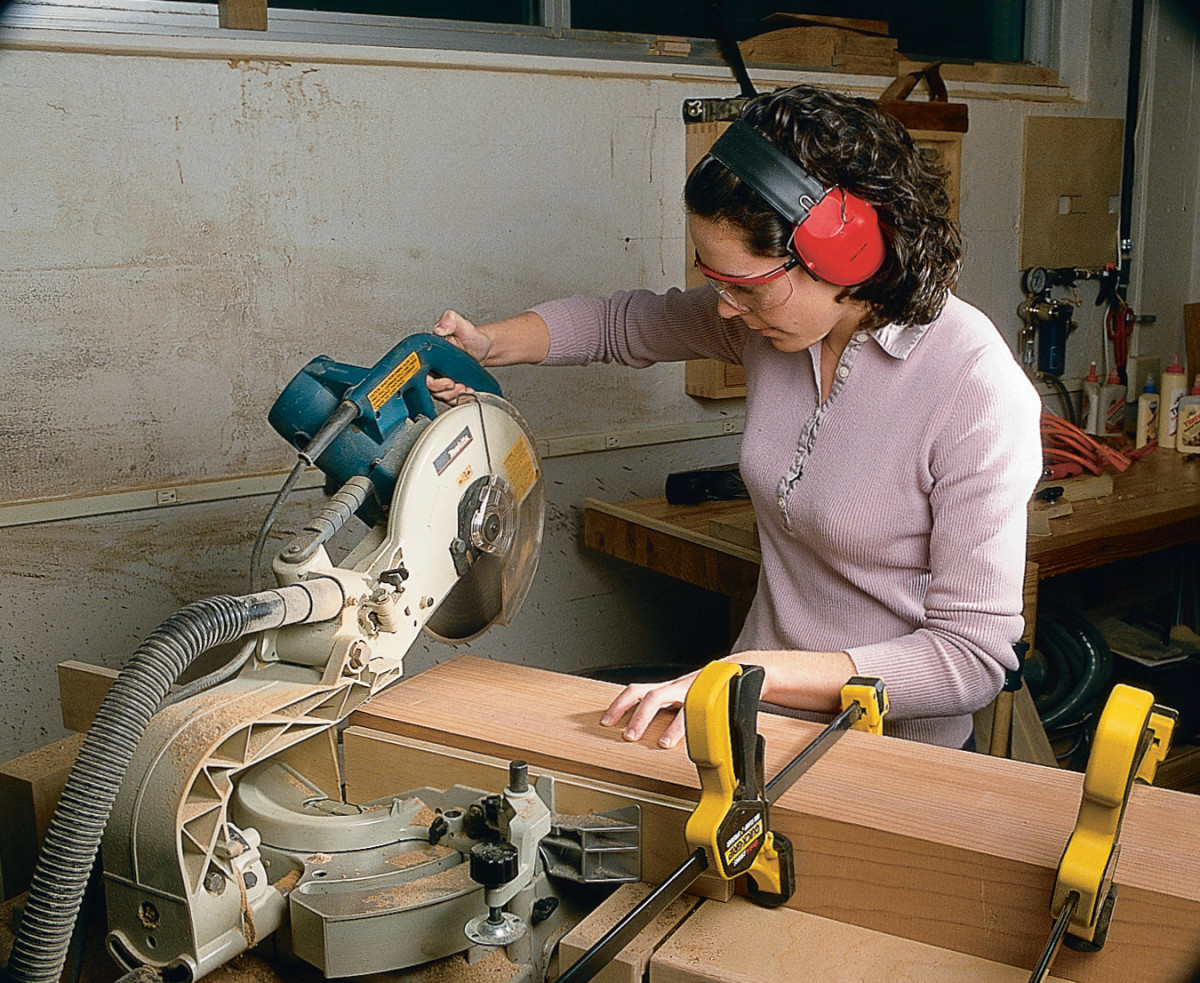 “Gang cutting” is when you clamp together all the parts that are the same length and trim them to size simultaneously, as shown below. This works no matter what tool you use for crosscutting.