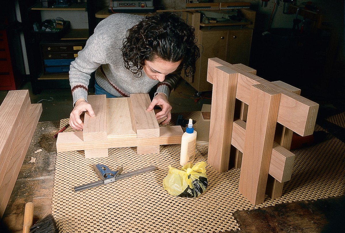 Use scraps as spacers to ensure that your leg assemblies go together just right. This is a lot easier than measuring everything.