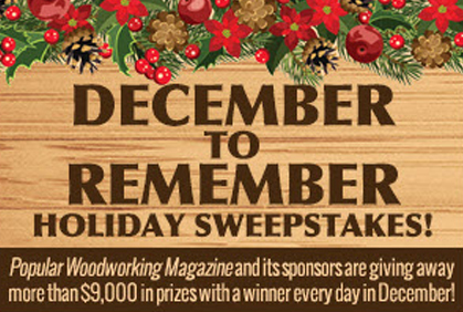 Popular Woodworking would like to say thank you to the many woodworkers out there who entered the 2014 December to Remember Sweepstakes. See our winners list below and don’t forget to try your luck next year!