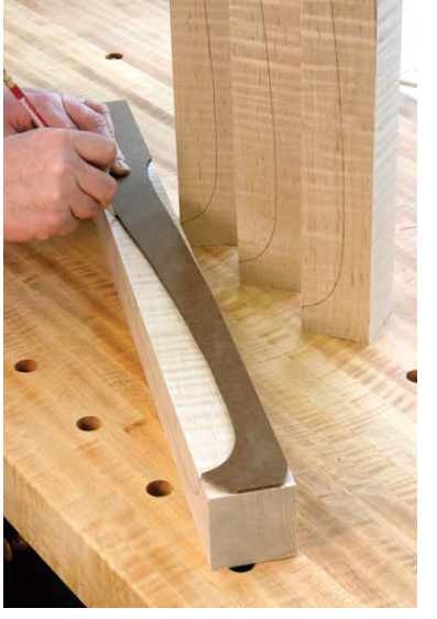 For the first year or so that I was building furniture – including the time I spent building pieces to get juried into shows – I was hesitant to make cabriole legs. Hesitant is probably not the right word; it was more like scared to death. I knew there would be no way I could produce four legs that looked the same, and I have yet to see a lowboy or highboy standing on a single cabriole leg. After some time, I felt it was important to slay that demon, so I milled my stock, sketched the pattern on the two adjacent faces and stepped up to my band saw. Cutting the shapes to the lines built my confidence, but I still needed to shape the legs – the hard work. One by one I completed the legs, comparing the second, third and fourth to the first. Set together there were differences, but spread apart as they would stand on the furniture, you couldn’t see any glaring variations. From that day forward, I have not purchased a single cabriole leg.