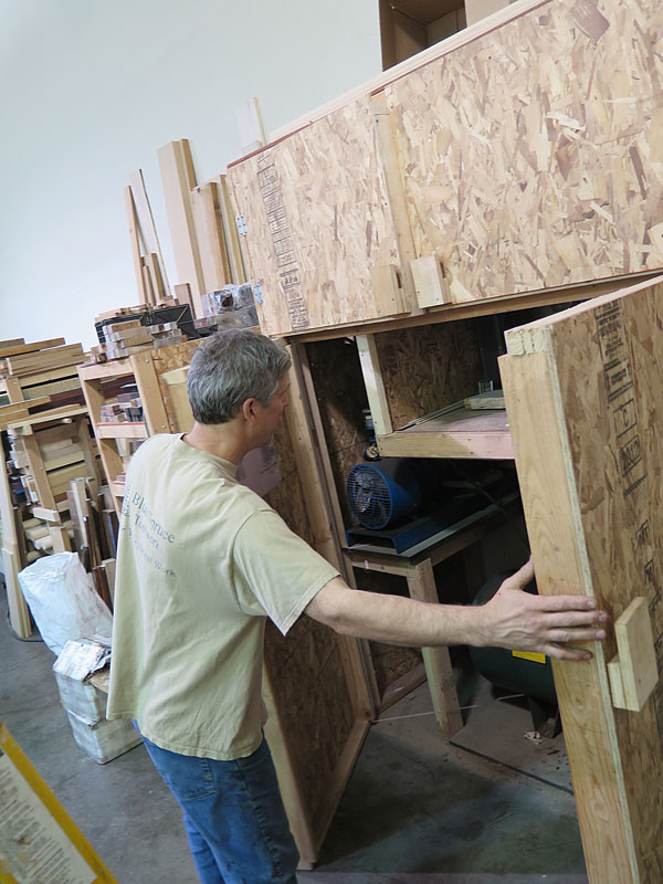 As with any woodworking enterprise, controlling moisture is critical (especially with exotics). So Jeske has built two dehumidifying chambers in the shop that allow him to slowly bring slabs to equilibrium moisture content, which he checks with a Lignomat moisture meter.