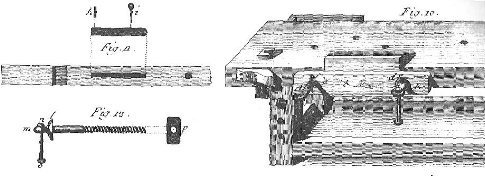 Until those arrive, I’ve been poring over the Roubo volumes on carriage building and garden woodworking. Both are chock-full of engravings of tools, benches, projects, jigs and procedures. One interesting nugget of information has been the illustration of the bench for the carriage trade. The bench is almost exactly like the benches shown throughout the three volumes I now have, but the vise is interesting.