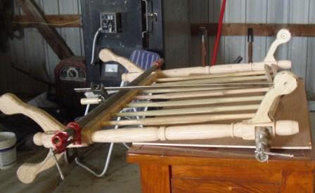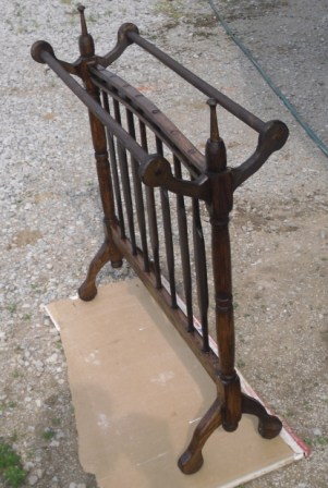 I had some scrap wood around the shop, a couple 2xs from a pallet, some pine and Poplar slats, and a "need' to make a quilt rack. I turned two end posts from one of the pallet's 'runners', and bandsawed a few other parts. Four 'feet", four "arms", two curved crest rails, and some "spindles". Feet and arms were more of that 2x runner. The two crest rails were bandsawn from another. As for those spindles, I bandsawed them the a rough outline. Then some work with a spokeshave to round the ends into a 1/2" dowel shape. The middle part of each spindle was then block plane to a knife edge on the outside edges. Some sanding to make thing smooth. All the legs and the straight bottom rail, plus the two curved crest rails were mortised and tenoned together. The arms used screws from the nuderside to attach them to the posts. The 'finials" on top of the posts are just a couple "Shaker" pegs. Counting the birch dowels between the arms ( to hold the quilts) there are five woods in this little quilt rack. Oak and Ash, and poplar for the main items. Those spindles used pine, and poplar slats from that same pallet.