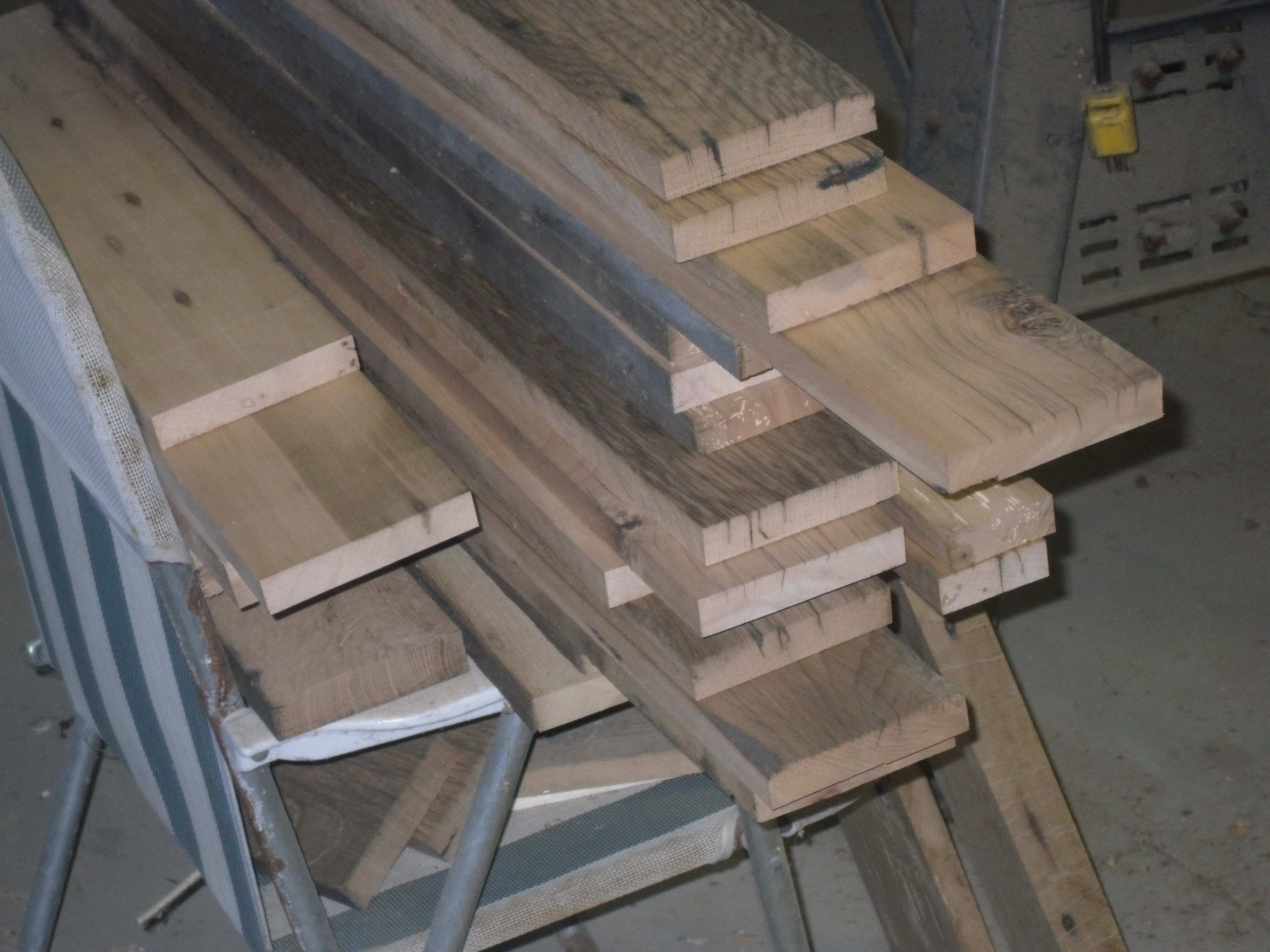 From a few old Oaken barn rafters? Yep, after pulling a few pounds of nails, resawing down to about 3/4" thick, and planning down nice and smooth, I wound up with a nice stash of White Oak. Purdy, ain't they? Made a box out of some of the parts