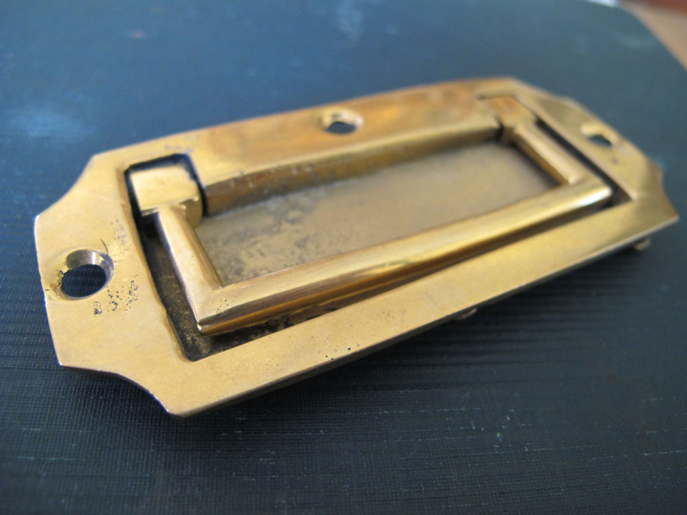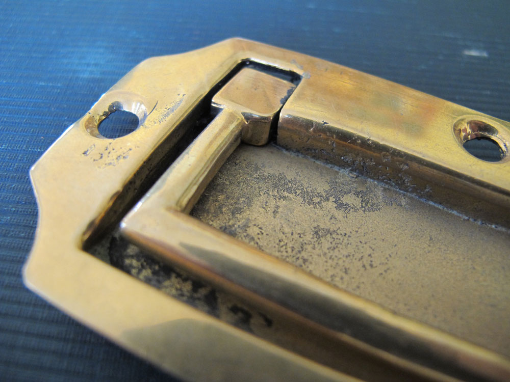 This piece is sold as item number MIL10, and it’s a brass that is 3-7/8” long and 1-3/4” high. It looks and feels just like the hardware I’ve seen on original pieces I’ve inspected over the years, including the pieces my grandparents owned.