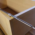 I position the rack 7” from the top of the chest. You could get away with less (say 6”) if you wanted your handles a little closer to the rim of the chest. Then I drill pilot holes for the screws and screw the rack to the wall of the chest (no glue; I want to be able to remove the rack for repairs or modifications).