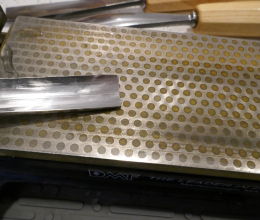 Since taking my hobby woodworking more seriously I’ve tried a few different honing mediums, but I always seem to come back to the venerable India combination stone that’s used by all the joiners in our workshop. It’s always had a dash of oil when in use and think no more about it. However, most of my hobby projects are much smaller than the general joinery products I’m involved with and I have noticed a bit of residue from the honing process where it is not welcome.