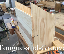 The case’s sides, top and bottom are joined with through-dovetails – four tails to a corner to make things easy. The back of the case is made using tongue-and-grooved boards. That’s all pretty typical stuff. The front of the case, however, is a little unusual.