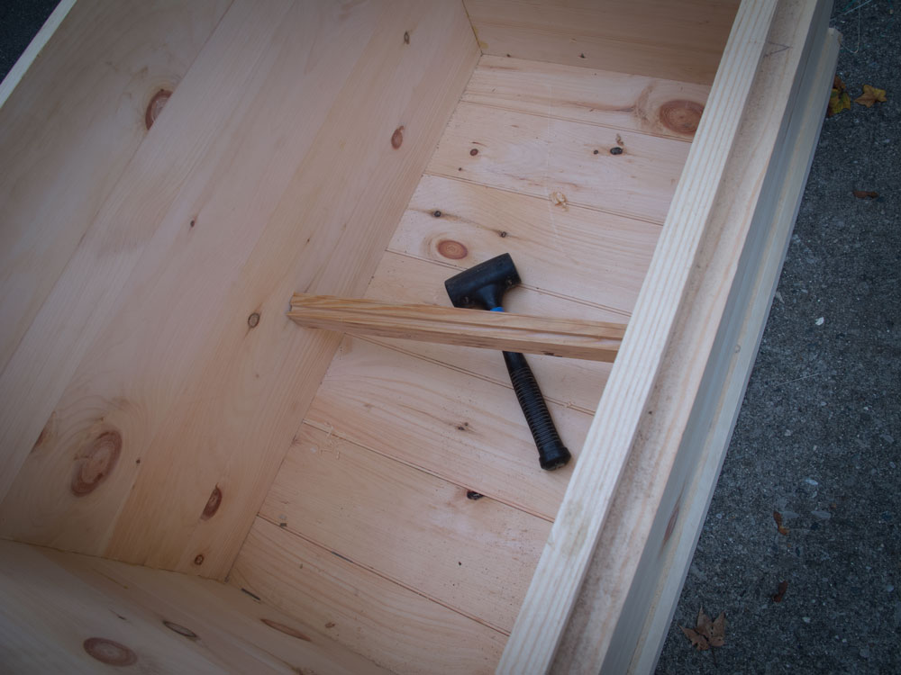 Let’s say you don’t have a Roy in your shop. Then get a beefy stick. Crosscut it to about 1/8” longer than the internal dimension of your carcase and wedge it inside the carcase with a mallet. You can use several goberges to put pressure right where you want it.