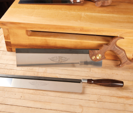 Need more on saws and sawing? Get Christopher Schwarz’s “Sawing Fundamentals,” a set of two DVDs he recorded for Lie-Nielsen Toolworks, or his “Build a Sawbench” DVD (Popular Woodworking Books) – build one of these, and you’ll not only get a crash course in sawing, but you’ll have a traditional sawing surface when you’re done (and I have it on good authority that a sawbench also serves well as a cat perch).