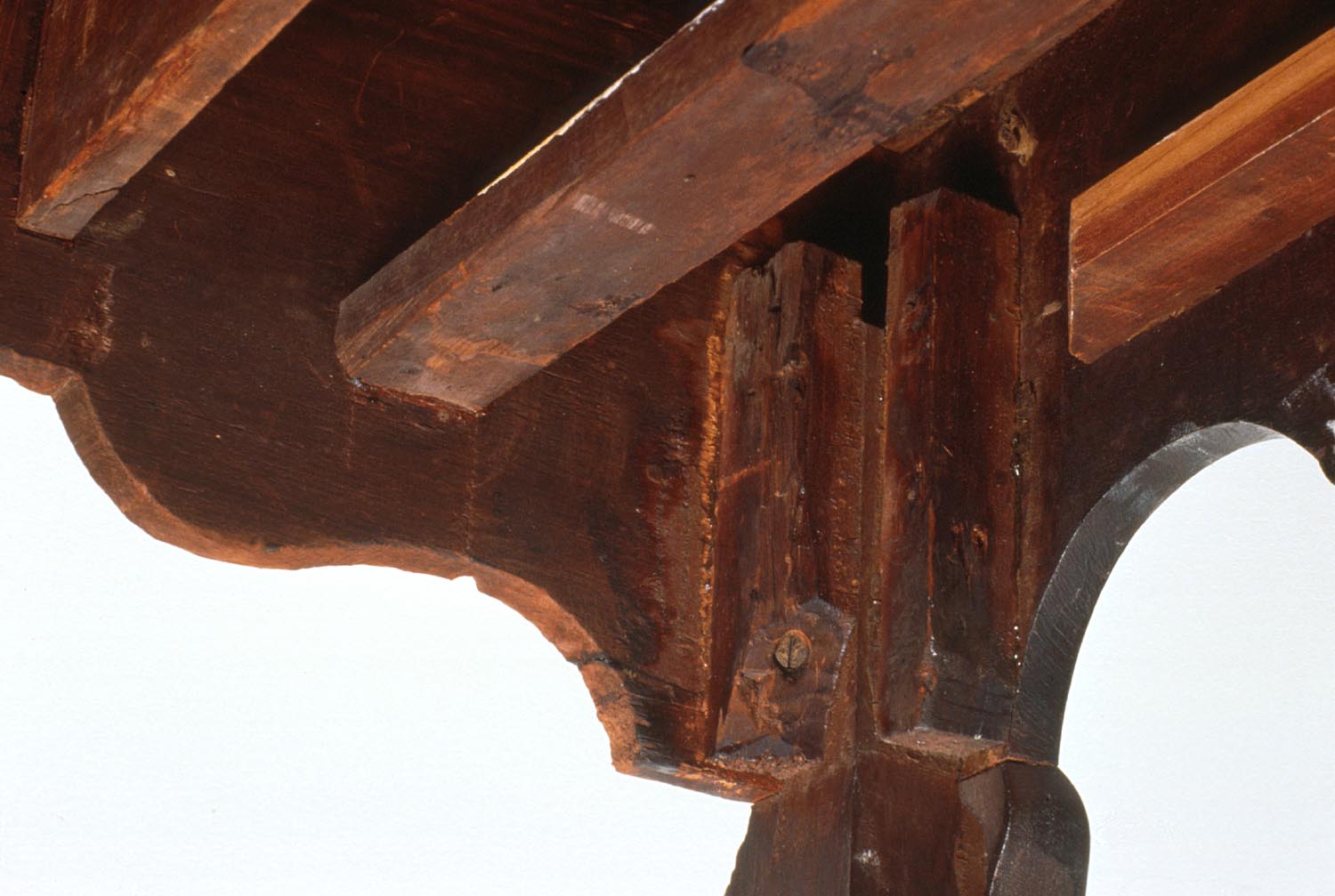 Sure some folks pointed out the washboard surfaces from being thicknessed by a motorized planer, but no one got the biggest clue as to why these two runners were additions (as opposed to being replacements) – they never existed when the piece was originally built. How do I know from this one little photograph?
