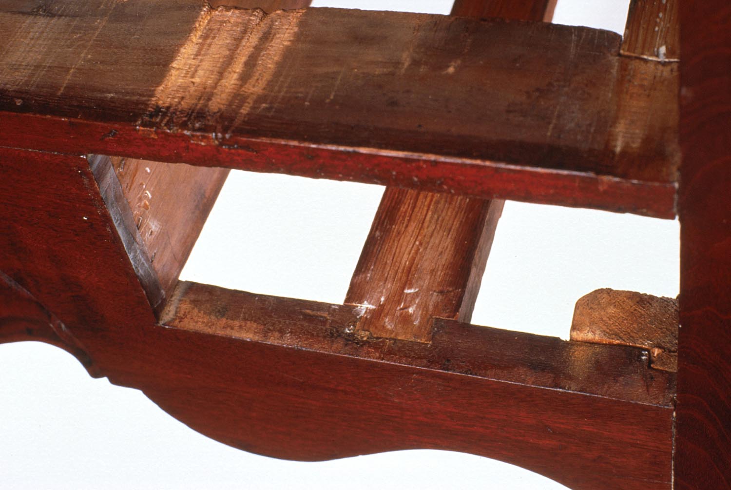 In Friday’s “Furniture Details” post I tossed out a photo of a Newport dressing table (or lowboy if you prefer), but shot from below. The idea was to get you looking at not only how the piece was made but how things had been repaired/replaced over time.