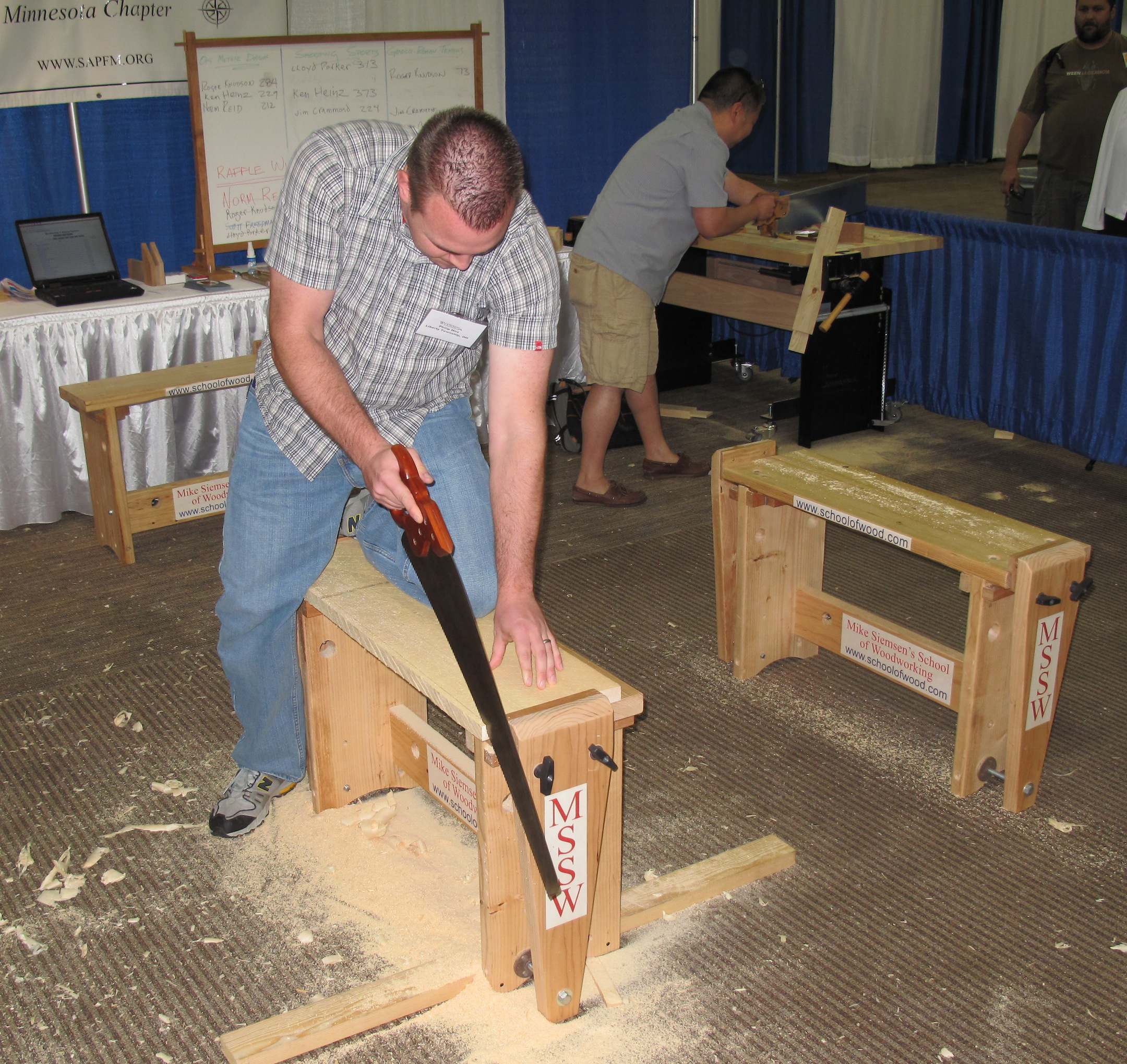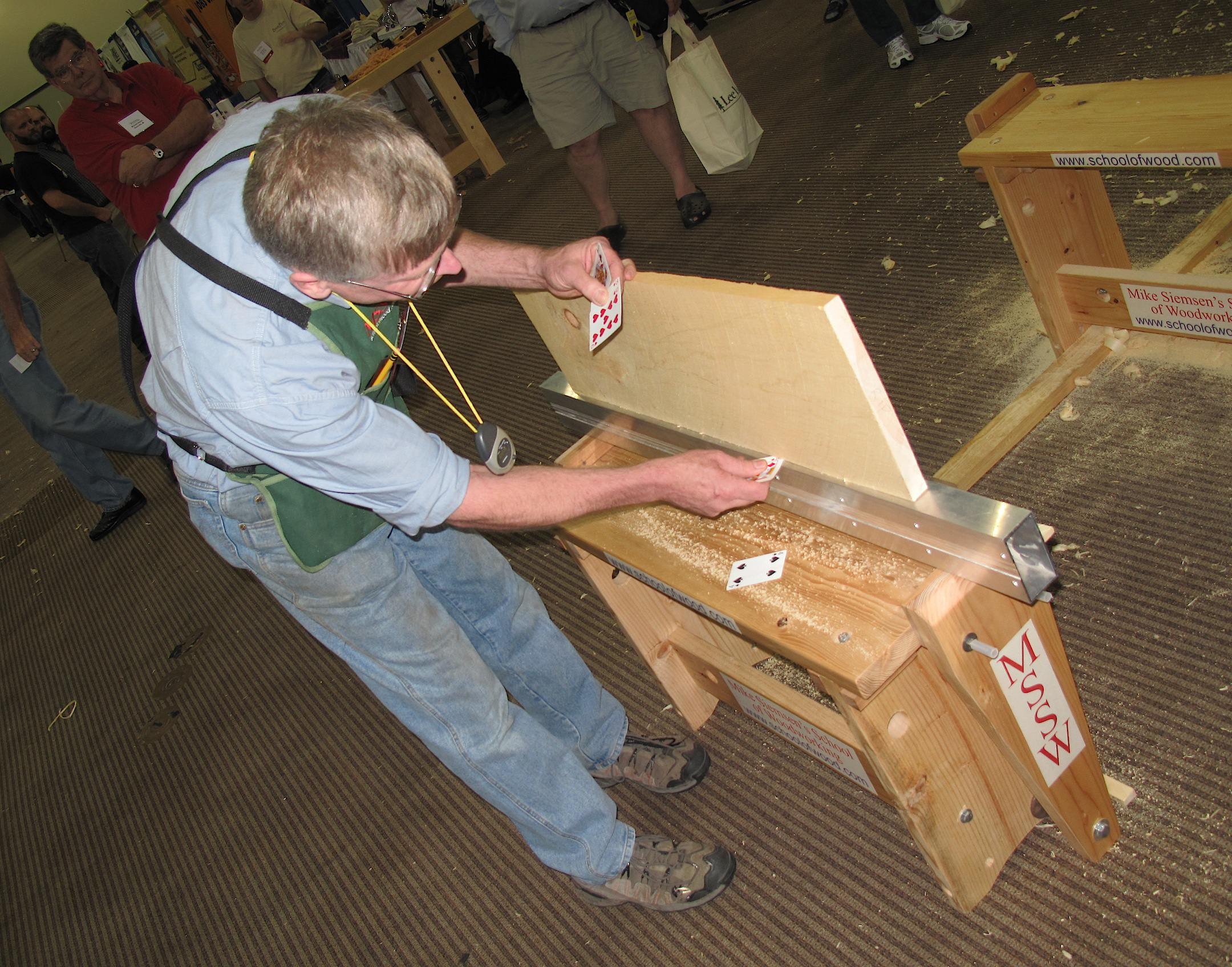 The minimum you have to do is participate. The maximum you have to do is – drum roll please – win an event at the Hand Tool Olympics. That’s right. I’m talking about the event held in the Marketplace at each conference. (Marketplace admission is $10 with a $2 discount if you sign up online.) The event where you walk up and Mike Siemsen and the gang from the Society of American Period Furniture Makers explains the events and gets you geared up to give them a try. (Sometimes, at least it happens whenever I’m around the booth, they talk smack. But it’s all in good fun.)