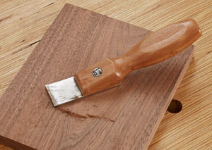 The Gramercy veneer saw, with its handle directly over the cutting edge of the sawplate, eliminates problems experienced with the offset handle of traditional English veneer saws. I’ve used a Gramercy saw for a couple of years and find the grip better for maintaining even downward pressure as I cut veneers. It also helps the saw track a straightedge better than its English counterpart. And interchangeable blades make this saw versatile (toolsforworkingwood.com).