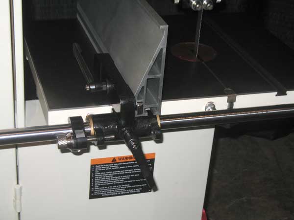 The blades guides, both above and below the table, look very industrial. Knurled knobs are easy to use and adjust. The thrust bearing has a notch to capture the blade for better tracking.