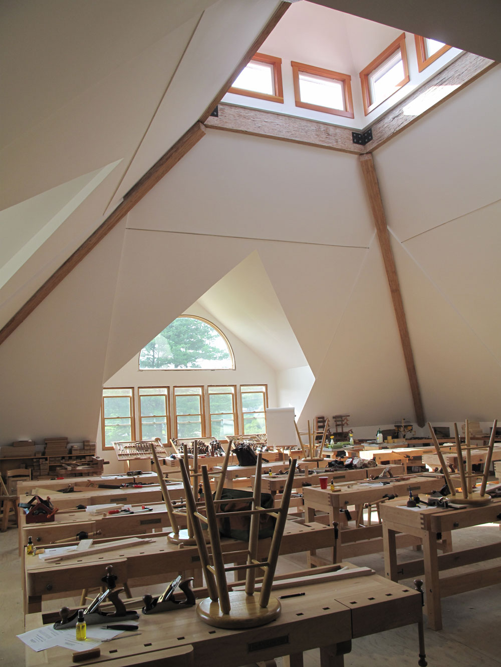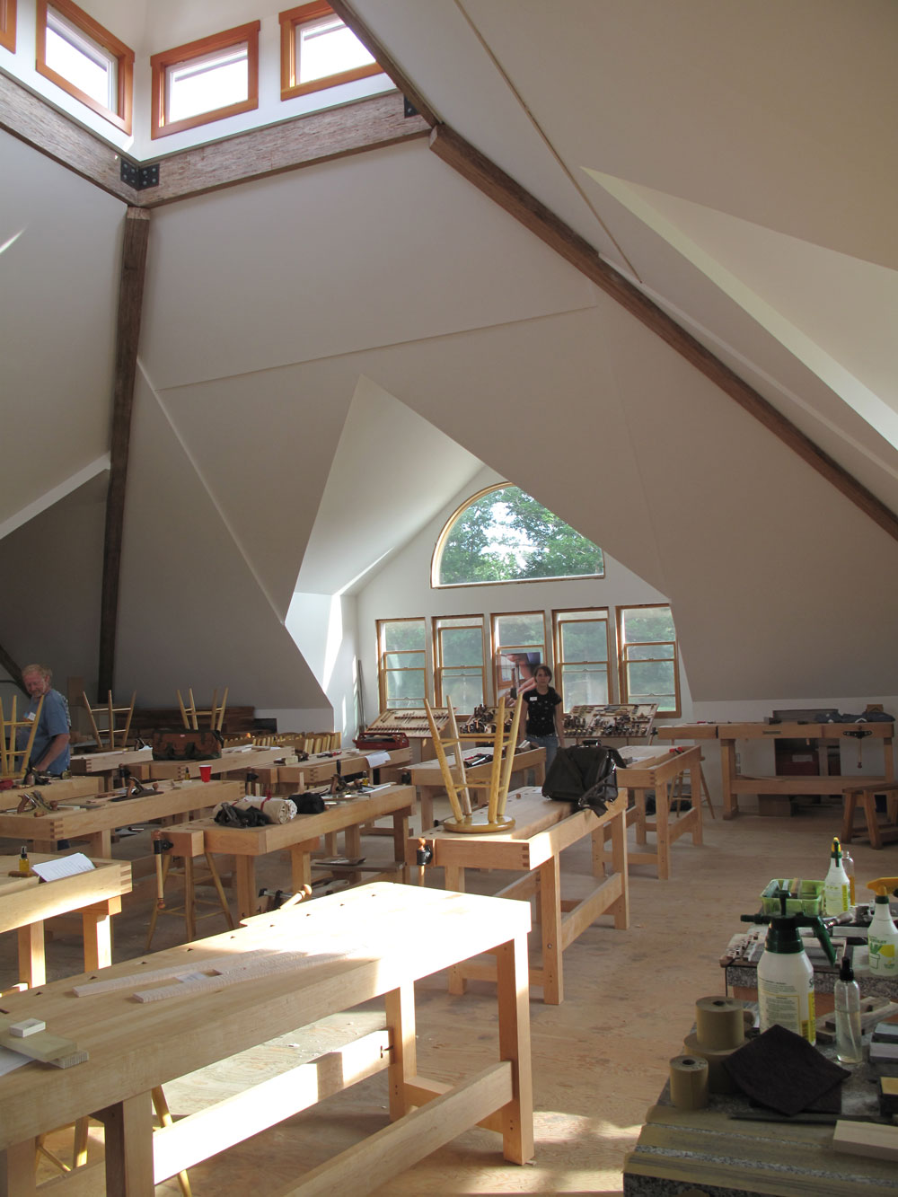 Last year, Lie-Nielsen held a few workshops in the space. This year, the company offered eight weekend classes – and hopes to expand its offerings soon. This weekend, I taught a two-day course in the space on building an English Layout Square, and I was struck by how nice it was to teach there. Here’s why:
